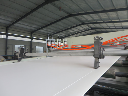 該生產(chǎn)線也可以生產(chǎn)單層及多層軟硬PVC板(片)材及PVC寬幅地板革