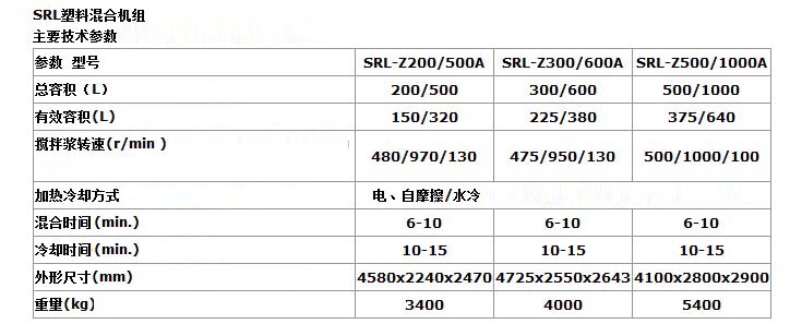 SHRL 高冷混料機 該機組系統在引進先進技術的基礎上研制而成,主要用于各種樹脂和PE、PP、PVC等材料的配料、混合、著色、干燥以及ABS聚碳酸酯等工程塑料加工前的干燥、脫揮等。 該機組將混合與冷混合工藝結合在一起,完成熱混的物料自動進入冷混使其冷卻,排除殘余氣體,并可防止結塊。